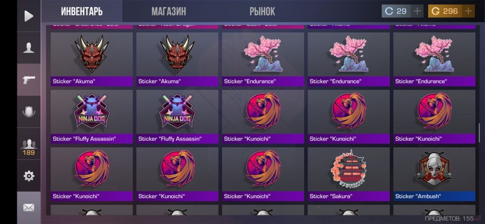 🎖Шармы: "Sale", "Ballistic Mask", "Katana", 2 "Daruma", "Imperial Coin", 3 "Kirsune", 4 "SHURIKEN";