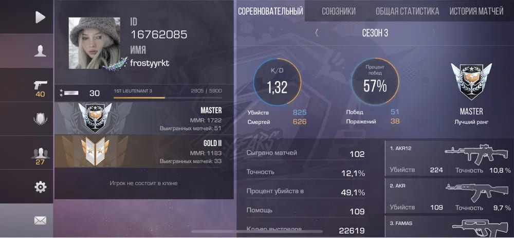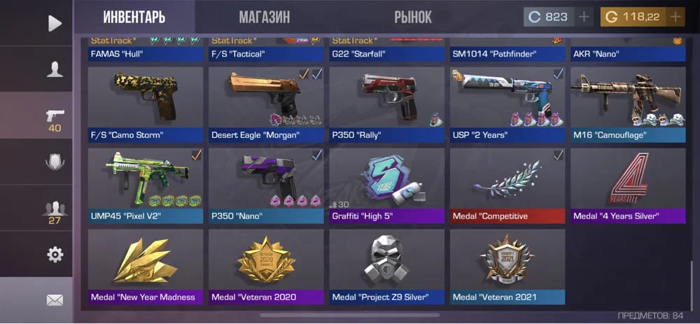 🎖Медали: "Veteran 2020", "New Year Madness", "Progect Z9 Silver", "Veteran 2021", "4 Years Silver"