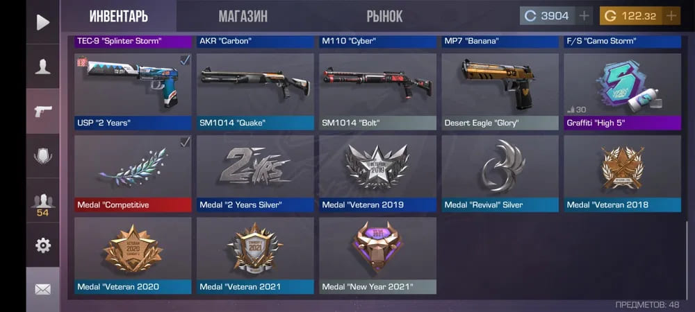 🎖Медали: "Veteran 2018", "Competative", "New Year 2019", "2 Years Silver"
