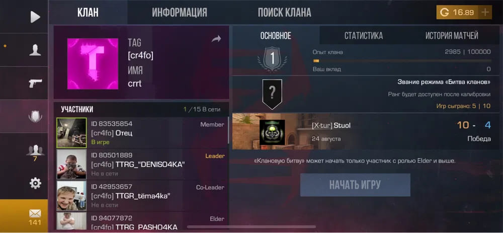 💰Голда: 16.89;
